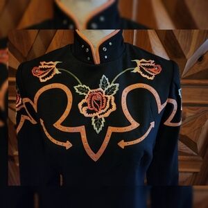Hobby Horse Roses Rhinestone Workman Showmanship Western Show Shirt Sz S