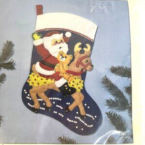 Hobby Kraft Storybook Christmas Felt Stocking Kit 9210 Santa & Reindeer 18" VTG