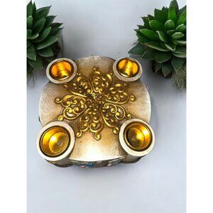 Beautifully crafted nativity scene candle holder featuring gold accents. Ideal for holiday décor and adding a touch of elegance to your home.