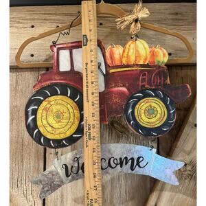 Hobby Lobby Red Metal Tractor Welcome Sign Fall Autumn Harvest Holiday Hanging Door Decor