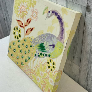 Hobby Lobby Wrapped Canvas Painted Floral Peacock Garden Scene Wall Art Artwork