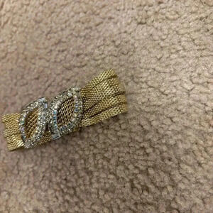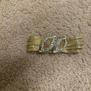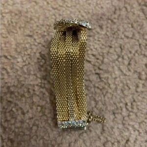 This is a vintage Hobe gold bracelet with a mesh chain design. It is a stylish and elegant piece of jewelry perfect for adding a touch of sophistication to any outfit.