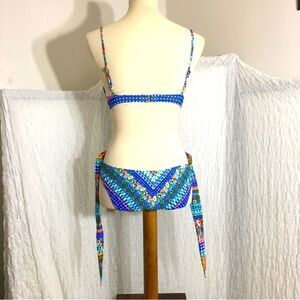 Colorful all over boho pasley print two piece swimset. Pre-owned in good condition. *No size available, best guess it's a size Medium. Please refer to pictures for best description and condition verification.