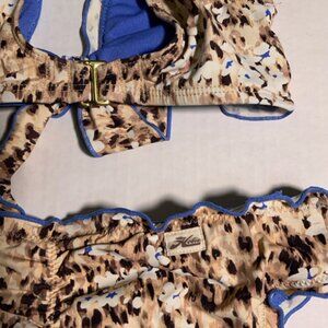 Hobie Girl's Sz 7 2Pc Cheetah Animal Print Ruffle Edges Hipster Swimwear (I)