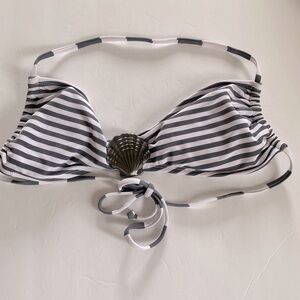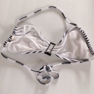 Hobie Gray and white stripped bandeau halter bikini TOP ONLY, Size M