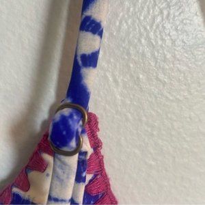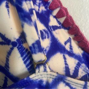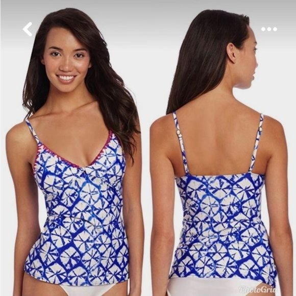 Hobie Sand Dollar Print Tankini Swimsuit Top. White and blue with pink crocheted detail. Style HS38E82. Adjustable straps. Padded bra. No underwire. Size large. The bra band is 30” around not stretched. 19” long from the top of bra part not including straps. New with tags.