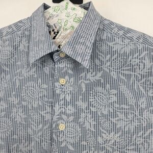 Hobie Shirt Mens Medium Blue Floral Striped Button Up Polynosic Rayon Vintage M. Good pre owned condition, please see all the pictures before buying.