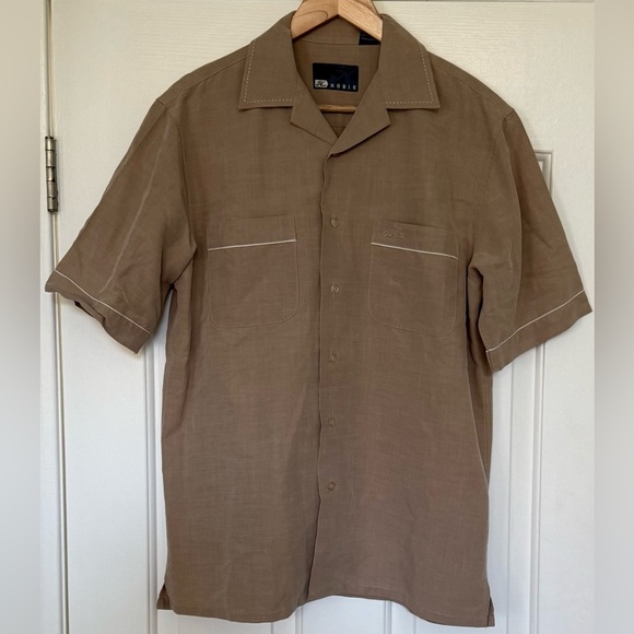 Hobie Short Sleeve Button Shirt Tan Rayon Blend Size S – Small flaw