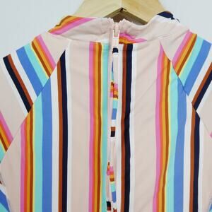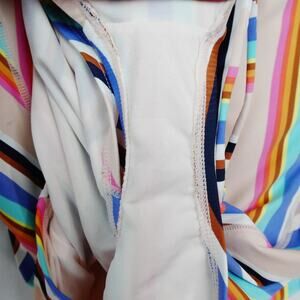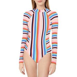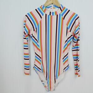 Hobie Standard Surf Suit One Piece Swimsuit Size L Rainbow Stripe Sleeves