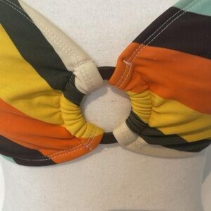 Vibrant striped halter bikini top perfect for summer. Features a stylish ring detail and adjustable straps for a comfortable fit. Size S