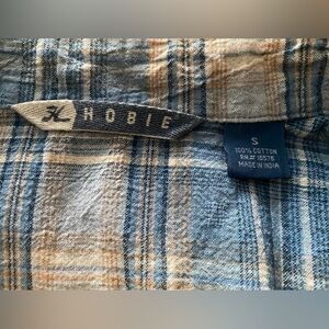 HOBIE Surf Plaid Light Blue & Tan Short Sleeve Collared Shirt Men S Small