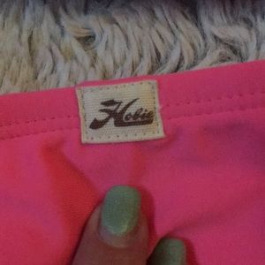 Super cute bright pink Hobie brand halter bikini with removable pads. Has a cute tribal embroidery detail. Never worn. Just didn’t fit. :(