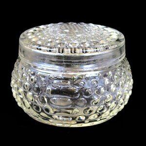 Hobnail Clear Glass Lidded Trinket Box Vintage Dot Dash Pattern 3.75" Jar