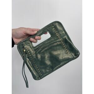 Hobo Ace Clutch In Evergreen Shimmer Leather Mini Evening Bag Wallet MSRP $188