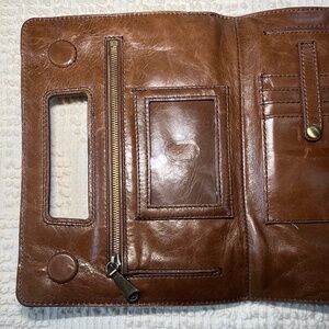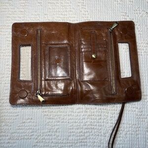 Interior Front: Zip pocket & 4 credit card slots; Interior Back: Zip pocket & ID window