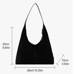 This elegant black suede shoulder bag is perfect for any occasion. Its sleek design and versatile color make it a must-have accessory.
