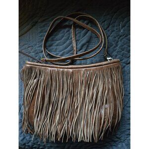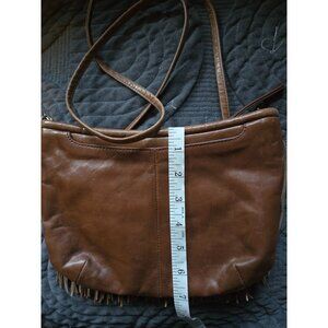 Hobo Brown Leather Fringe Crossbody Shoulder Bag With Adjustable Strap & Zipper