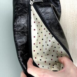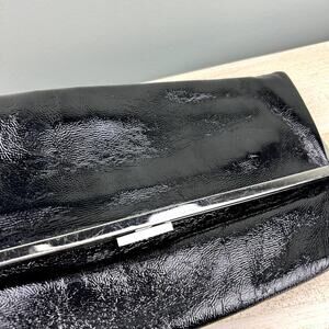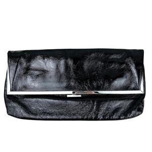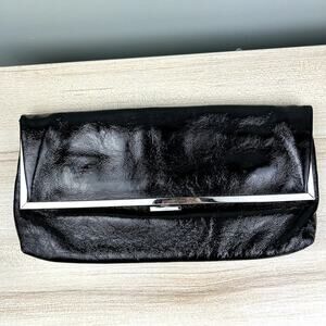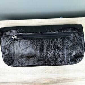 Hobo Clutch Purse Black Patent Leather Large Magnetic Fold Foldover Bag