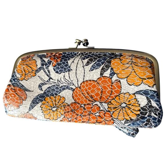 This large frame wallet doubles as a clutch thanks to the leather wristlet strap.