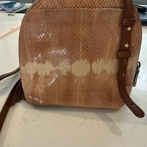 Hobo Cream and Brown Crossbody Bag with Snakeskin Texture Callouts!