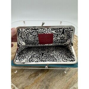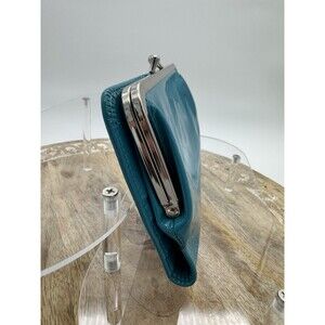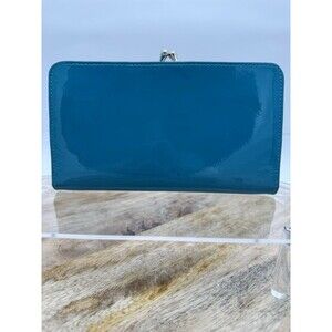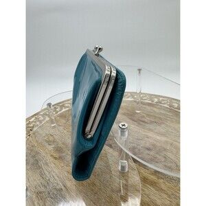 Hobo Diane Patent Leather Continental Wallet Clutch teal Kiss-lock Magnetic READ
