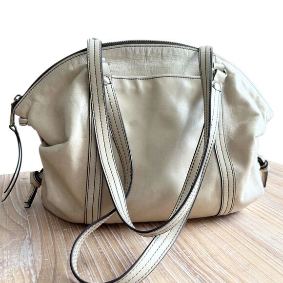 Hobo Flourish Leather Shoulder Bag in Cream. Good used condition with light wear. Please review all photos prior to purchase.