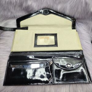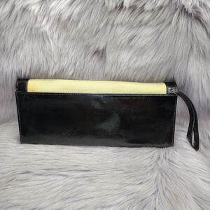 Hobo International Black Patent Leather Black Beige Canvas Clutch Handbag Mirror