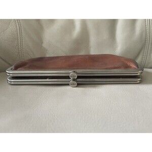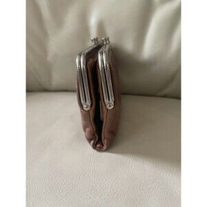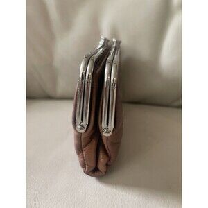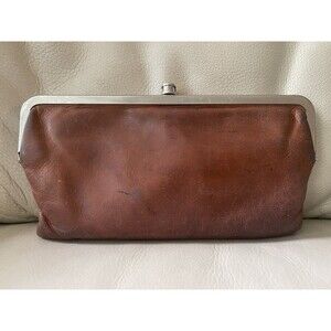 Hobo International Leather Clutch Lauren Double Frame Handbag Wallet Brown