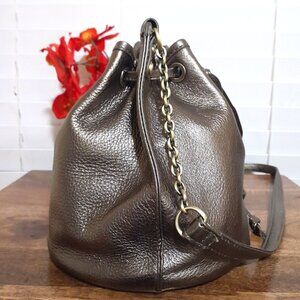 Hobo International Leather Metallic Bronze Shimmer Bucket Shoulder Bag