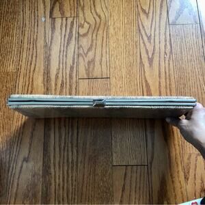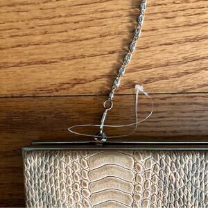Beautiful clutch, can be used as a crossbody with the removable silver hardware strap. Normal wear on hardware. Very well taken care of.