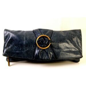 Hobo International SMOOTH DARK BLUE GENUINE LEATHER FOLDING CLUTCH PURSE HANDBAG