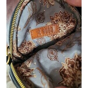 Hobo Intl Black Leather zodiac Star Sign Aquarius Pouch W/ Dogclip EUC
