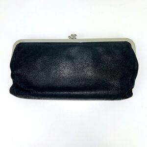 Hobo Lauren Clutch Wallet Coin Purse Bag Black Leather Kisslock Closure Classic