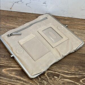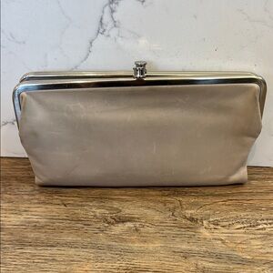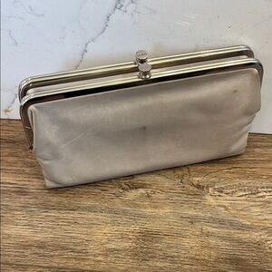Hobo Lauren Clutch Wallet Leather Double Frame Light Gray Magnetic