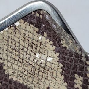 Elevate your style with this genuine leather clutch wallet by Hobo. The snake print design and sturdy metal frame make it both chic and durable.