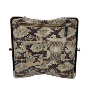 Hobo Lauren Leather Snake Clutch Wallet Frame Snap Closure Evening Bag Beige