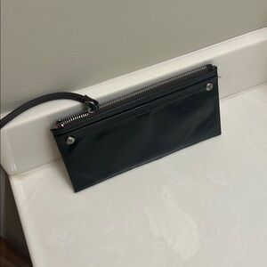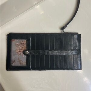 Hobo Leather Wristlet, dark brown/black color. In great condition. Has zipper and floral interior.