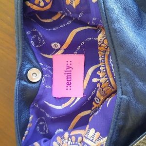 Perfect Condition Black buttery leather, with gold sequined shoulder strap, Gold tone hoops, and metallic silver lizard embossed leather base.