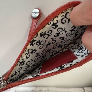 Gorgeous high quality leather wallet with secure card storage and zippered pouch- perfect slim addition to your bag. Some discoloration on interior zipper. Smoke free home. Fast and careful shipping!