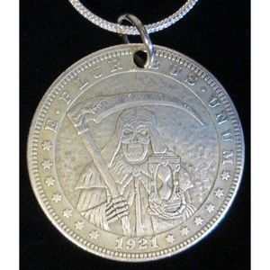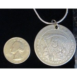 Hobo Nickel Coin US 1921 Morgan Dollar Santa Muerte Macheta Sand Clock Necklace