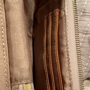 Small stain on inside top flap that is untreated. May come clean with a baby wipe.