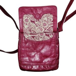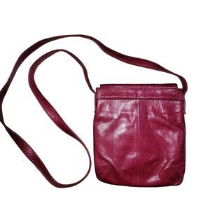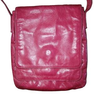 Good pre-owned condition. Women's Hobo Raspberry leather cross body purse bag.