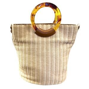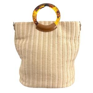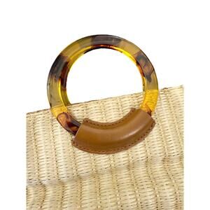 Hobo Sheila Raffia Circle Handle Tote Bag Straw Woven Tortoise Ring Handles