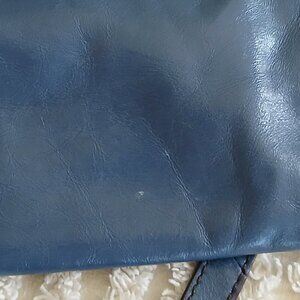 Beautiful blue color, inside is in excellent condition. Slight normal wear on the corners of the bag. Minor mark on back of bag as shown on picture. Leather is beautiful. No odors or smells and pet free home.
