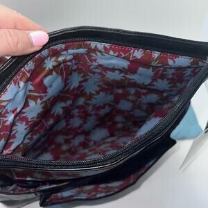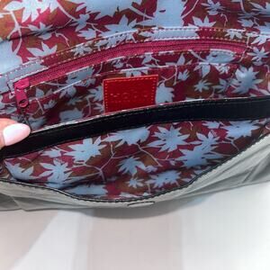 Main pocket has credit card slips, 2 slip pockets, 1 zip pocket