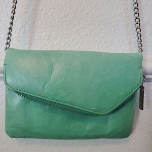 Hobo The Original Daria Leather Crossbody Embossed Aqua Silver Chain Strap