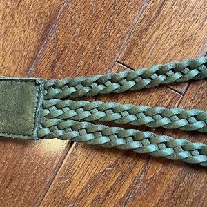 This is the cutest belt! Love the three strand braiding and subtle green color. Wear with pants or a dress. In good preowned condition. Size medium. Brass color accents.