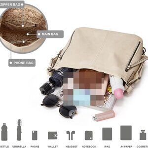 Hobo Tote Shoulder Handbag Purse Set Faux Leather Large Capacity Travel