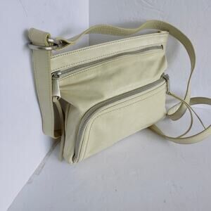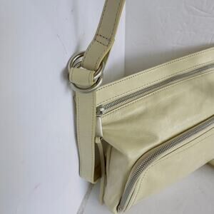 Hobo White Leather Crossbody Two Compartment Adjustable Strap Silver Tone M