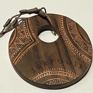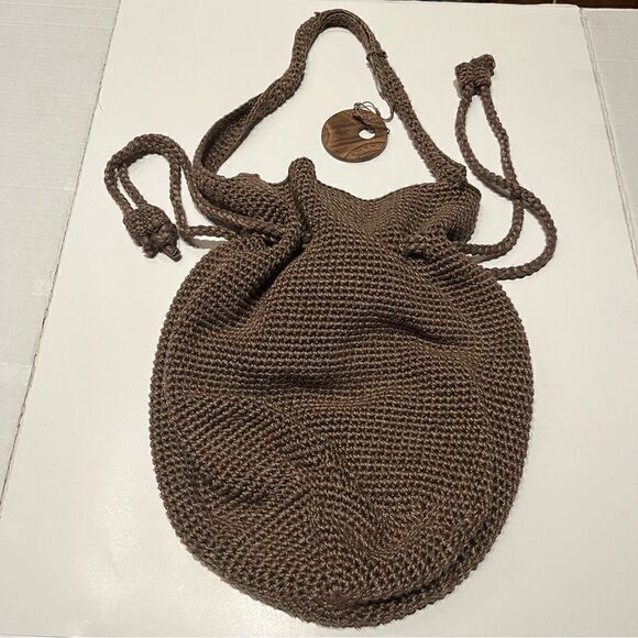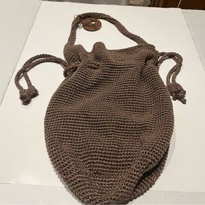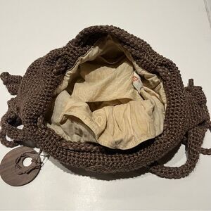 Beautiful. Sakroots. Happy Free. Excellent condition. Lined. One main compartment with 2 slip in pouches on one side and one zip pouch on the other. Snap and draw string close. Crochet